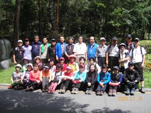 다음 달 산행은 16일 교대전철역 8번 출구에서 출발해 전북 무주 덕유산 산행을 실시할 계획이다. 많은 참가문의 011-713-7009. 사진 설명: 충남 보령 성주산에서 7월 산행을 실시한 재경향우산악회원들.