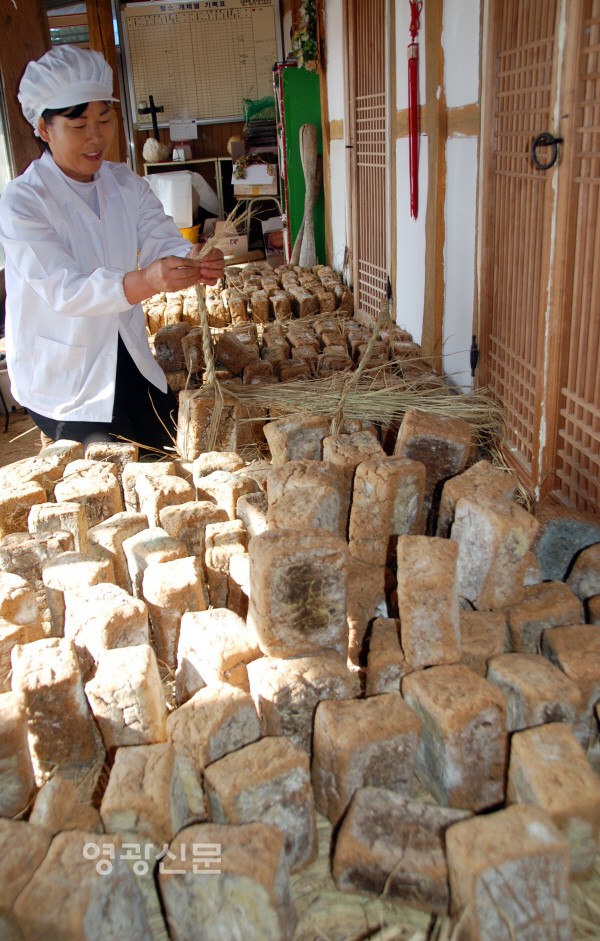 장은 묵어야 제 맛이라는 말처럼 묵은 장은 더욱 깊은 맛을 낸다. 2000년부터 전통메주와 된장·간장·고추장을 담가온 대마 ‘이봉순된장’ 강영숙 대표가 토방에서 장에 담글 메주를 선별하고 있다. 이봉순된장은 불갑에 새 보금자리를 튼다