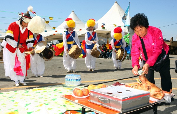 우리 조상들은 한해 농사를 시작하기 전에 모두가 모여 풍년을 기원하는 제를 지내곤 했다. 요즘은 일기예측이 어느 정도 가능하고 기계화 돼 의미가 줄었지만 풍년을 마라는 마음은 한결 같다. 11일 오전 만남의 광장 ‘2011년 영광농민 풍년 기원제’에서.