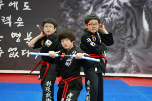 체육관에 들어서니 재빠른 발놀림과 번개 같은 주먹으로 상대를 제압하는 모습, 챙~ 챙~ 소리를 내며 쌍절곤을 돌리는 수련생들의 모습이 영화 속에서나 봄직한 솜씨다. 나이는 어리지만, 동작 하나하나에 힘이 넘친다.