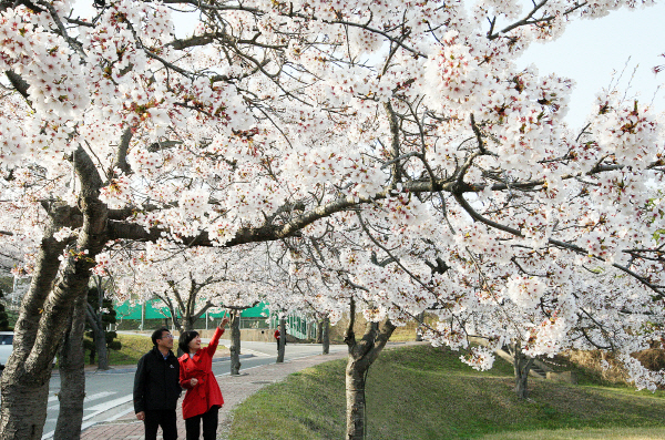 4월의 눈꽃으로 불리는 벚꽃은 만개해 절정을 이룬 뒤 눈처럼 휘날려 다시 한 번 탄성을 자아낸다. 9일 오후 벚꽃이 만발한 홍농읍 한수원 사택광장에서 ‘지역주민 초청 벚꽃한마당 행사’가 열렸다.