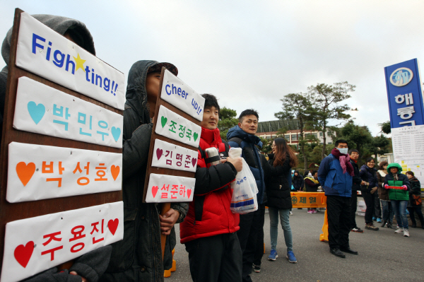 올해도 여전히 대학수학능력시험을 치르는 13일은 강추위가 몰아쳤다. 이날 전라남도교육청 나주시험지구중 5시험장인 영광고등학교에서는 여학생 224명, 6시험장인 해룡고등학교에서는 남학생 239명 등 18개 시험실에서 모두 463명이 시험을 치렀다. /최미선 기자