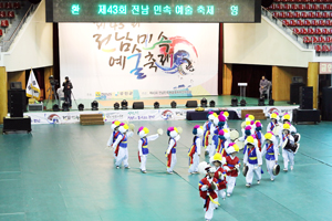 군남초등학교(교장 정은택)는 지난 22일 강진에서 열린 제43회 전남민속예술축제에 영광우도농악부로 전교생이 참가하여 우수상을 수상했다. 남도의 전통 민속예술을 발굴하고 보존․전승을 위해 전라남도와 강진군에서 주최한 이번 대회에는 각 시군 대표로 일반부 21팀, 청소년부 13팀이 참가하여 그 동안 갈고 닦은 실력을 선보였다.