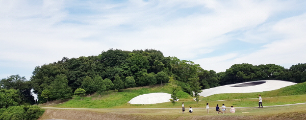 특히, 테시마미술관은 외관부터 남다른 모습으로 방문객들의 호기심을 자극한다. 1인당 입장료 1,540엔(15세 이하 무료)을 내면 티켓을 받아 매표소와 미술관으로 이어지는 좁은 숲길을 걸어야 한다. 어쩌면 이 미술관은 매표소를 나서는 순간부터 관람이 시작되는 느낌이다. 숲길을 걸으면 이곳을 오면서 바라봤던 ‘세토나이카이’의 풍경이 한껏 더 멋지게 펼쳐진다. 커다란 하얀색 조개껍데기 같은 둥근 구조에 구멍이 뚫려 있는 미술관은 멀리서 보면 우주선이 내려 앉은 것처럼 보이기도 한다. 미술관 입구에 다다르면 줄을 서서 안내원들의 지시를 기다려야 한다. 미술관 내부 관람객이 나가면 일정 수를 조정에서 들여보내는 방식이다. 입장 지시가 떨어지면 신발은 입구 신발장에 보관한 뒤 정숙하며 들어가야 한다. 실내에 들어서면 커다란 구멍을 통해 하늘이 보이고 가느다란 실이 바람에 하늘거린다. 콘크리트 바닥에는 작은 구멍이 뚫려있어 물방울이 한 방울씩 올라온다. 바닥은 방수 표면으로 처리되어 물방울이 자유자재로 돌아다니며 때로는 섞이고 때로는 흩어지기를 반복하다 작은 물구멍으로 “또로롱” 소리를 내며 다시 들어가곤 한다.