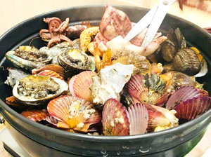 주메뉴인 해산물찜에는 가리비, 키조개, 석화, 오징어 등 10여 가지 조개와 해산물을 사용해 푸짐한 한 냄비를 차려낸다. 양파, 파, 무, 다시마 등을 넣고 끓인 채소 육수에 다양한 해산물을 팔팔 끓여 먹는 바다야 전골은 얼었던 몸을 녹이는 데 안성맞춤이다.
