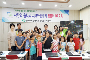 아동센터 대상 OA교육은 2007년도부터 이어져 올해로 12년째 시행되는 프로그램으로 이번에는 주변지역 6개 초등학교 47명이 참가했다. 아동들은 1차와 2차에 걸쳐 타자 연습부터 한글과 엑셀 활용까지 컴퓨터 활용능력을 기초부터 탄탄히 다졌다. 특히, 아동들의 흥미를 유발할 수 있는 컴퓨터 코딩에 관한 수업에 진지함이 더했다.
