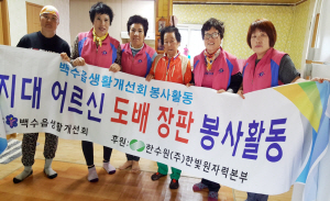 생활개선회 회원 25여 명은 한빛원자력본부의 후원을 받아 복지사각지대에 해당되는 어르신 6가구를 방문해 도배와 장판 교체를 비롯한 집안 대청소 작업을 했다.