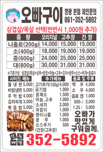오빠구이 김태훈 대표는 “처음 가게를 열면서 가장 지양했던 건 보여주기 식의 서비스라며, 깐깐하게 고른 원육과 음식으로 승부하고 싶었다”며 “국민 음식인 삼결살과 목살을 주력 메뉴로 내세워 아이들을 동반한 식사부터 가족, 동호회, 직장회식 등 많은 고객들이 찾고 있다. 앞으로 영광을 대표하는 맛 집이 될 수 있도록 더욱 노력 하겠다”라고 밝혔다.