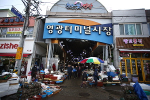 일주일 내내 많은 사람들로 붐비는 영광 터미널시장은 매일시장이다. 신선한 제철 과일과 채소, 제사 음식 등 없는 게 없는 전통시장 터미널시장은 버스터미널과 붙어있어 장을 보러 들리기도 하고 때로는 소박한 한 끼로 든든한 배를 채울 수도 있는 정이 넘치는 곳이다.