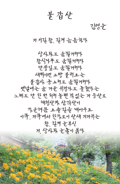제19회 영광불갑산상사화축제가 오는 18일부터 24일까지 7일간 불갑사관광단지 일원에서 열린다. 축제기간동안 다양한 전시회가 열리는 가운데 시화전을 지상을 통해 미리 만나본다.