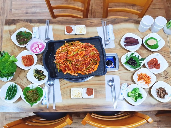 점심에는 부담 없는 돼지주물럭이 인기다. 역시나 싱싱한 재료와 자꾸 당기는 양념 맛으로 손님들 입맛을 사로잡았다. 복날에 빠지지 않는 삼계탕 외에도 오리탕, 오리로스, 묵은지닭볶음탕 등 남녀노소 누구나 즐길 수 있는 닭·오리고기 요리로 가득하다.