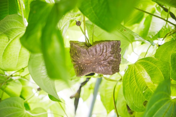 바로 다름아닌 ‘마’다. 땅속에서 캐는 일반마와는 달리 공중에서 자라는 ‘열매마’다. 우리가 흔히 떠올리는 마의 모습과는 다른 이색적인 외모 탓에 별명도 많은 작물이다. 공중에서 자란다며 ‘하늘마’, 모양새가 우주선 같다며 ‘우주마’… 이 밖에도 공중감자, 넝쿨마, 줄기마 등으로 다양하게 불린다. 실제로 보면 희한하게 생긴 열매가 줄기에 매달려 있는 것도 신기한데, 잘 익은 것들을 따놓고 보니 정말 돌덩어리를 모아놓은 것 같다.