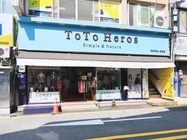 “망설임 없이 득템해 갈 수 있는 곳이에요.” 토토헤로스는 2세부터 12세까지 아이들을 위해 심플하고 내츄럴한 디자인을 선보이는 유아동복 브랜드이다. 트렌디한 디자인과 품질 대비 높은 가성비로 호평을 받고 있다. 중저가 브랜드이지만 시즌마다 세일에 들어가면 더욱 저렴하게 구매할 수 있는 가성비 옷집이다. 세일 때마다 김정선 대표가 단골분들께 문자로 꼭 알리니 그때 맞춰서 방문하면 예쁜 옷을 저렴하게 ‘득템’할 수 있다.