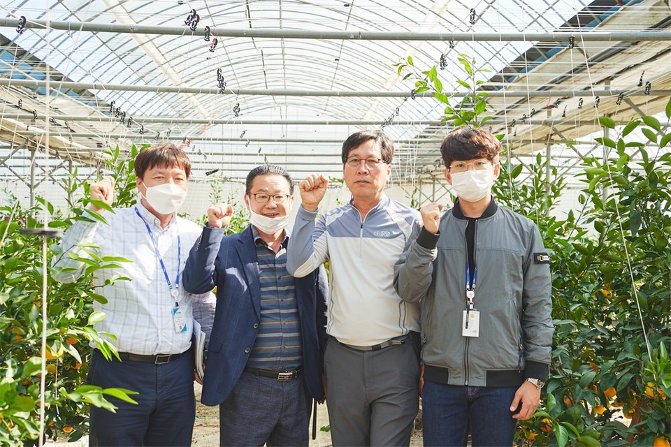 “노력만큼 보답이 오는 거니까 열심히 노력해야죠.” 수확까지 만 3년이 걸렸다. 당도도 높고 품질도 우수하다 알려진 신품종 ‘유라실생’ 2년생 묘목을 심어 4년 동안 길러야 했다. 농장에 토마토를 함께 재배하며 얻은 소득을 귤농사에 재투자했다. 귤 재배기술 교육도 받고 전문가에게 자문도 받고 다른 지역 농가도 방문해가며 귤에 대해 공부했다. 레드향, 황금향 등 다른 품종도 심어 품종 연구도 꾸준히 했다. 난관에 굴하지 않고 시행착오를 겪어가며 귤나무를 가꿨다. 장 대표의 노력 덕에 귤나무가 영광 땅에 제대로 적응했는지 가지마다 무거울 정도로 귤이 가득 열렸다.