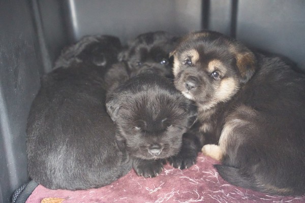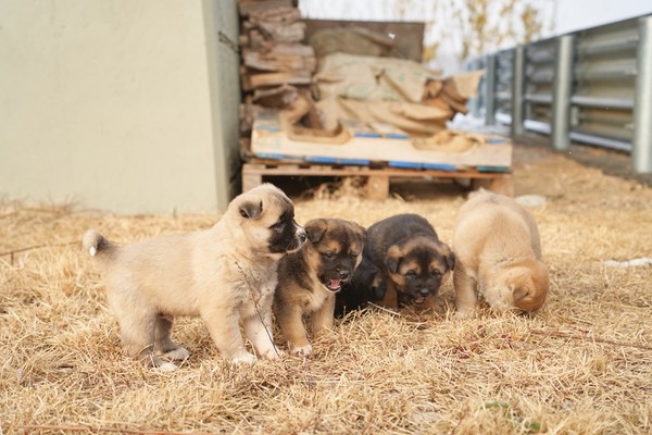 또 다른 강아지 가족들은 어미부터 새끼들까지 온통 깜장이들이다. 뚱한 표정을 짓고 추운 날씨에 형제들과 옹기종기 모여서 낮잠을 즐기고 있다. 깜장이 4마리의 엄마개는 산단 내 다른 업체에서 키우던 강아지로 추정된다. 드문드문 놀러오더니 살만했는지 아예 자리를 잡고는 새끼까지 낳았다. “아빠개로 추측하는 요주의 수컷들이 있기는 한데, 새끼들 털색보고 짐작할 뿐 아무도 몰라요.”