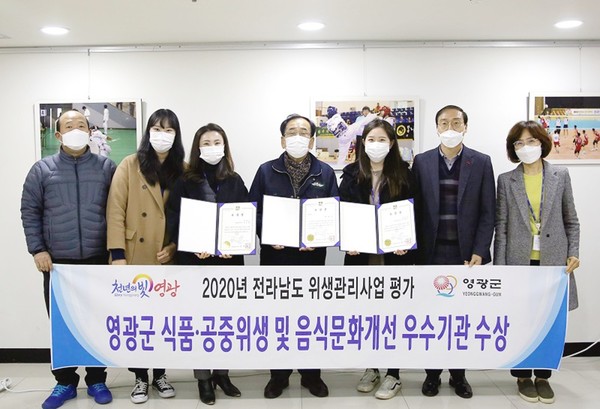 영광군이 2020년 전라남도 시군 위생관리사업 업무 평가에서 식품·공중위생관리와 음식문화개선 분야에서 우수기관으로 선정돼 음식문화개선 사업비 800만원과 포상금 50만원을 확보했다.
