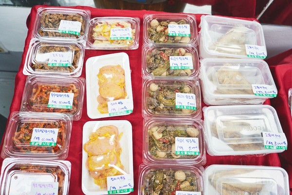 ‘은혜네 반찬가게’ 문 앞에는 ‘오늘의 메뉴’가 적혀 있다. 최화자 대표가 그날그날 새롭게 만든 신선한 반찬들이다. 가게 안에 들어서면 20여 가지의 다양한 반찬들이 가지런히 놓여있다. 장날에는 꼭 나오는 홍어무침, 제철재료로 무치는 계절메뉴, 꾸준히 잘나가는 마른 반찬류와 젓갈 그리고 냄새 때문에 집에서 해먹기 번거로운 생선구이까지 실속 있는 메뉴들로 가득하다.