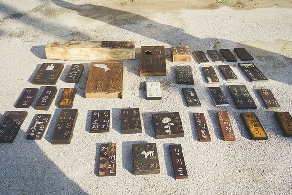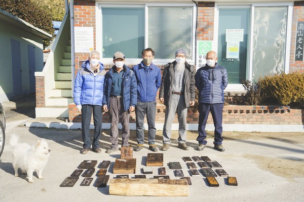 햇살 좋은 겨울날 대마면 남산마을 노인정 앞마당에 크고 작은 나무 조각들이 널려있다. 모양도 크기도 제각각인 나무 조각 위에는 마을 주민들의 이름이 곱게도 새겨져 있다. 바로 남산 마을에서만 볼 수 있는 특별한 문패이다.