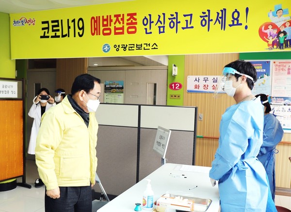 김준성 영광군수는 요양시설 종사자의 접종장소인 보건소를 방문하여“백신의 공급 일정에 따라 예방접종이 원활히 진행되도록 최선을 다할 것”을 당부하며 “오늘 접종하신 여러분 모두가 영광군의 코로나19 예방접종 1호 접종자이며 군민 모두의 일상 회복을 위해 최선을 다하겠다”고 말했다.