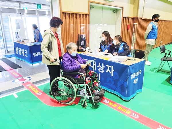 영광군은 지난 8일부터 영광스포티움 보조실내체육관에서 만 75세 이상 어르신 등 노인시설 이용자를 대상으로 화이자 백신 접종을 시작했다고 밝혔다.
