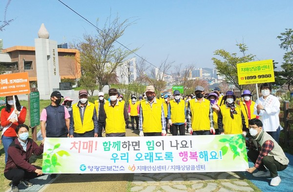 영광군은 최근 영광예술의 전당 등 우산공원 산책로에서 300여명의 군민과 함께하는 비대면 치매극복 한마음 걷기 행사를 열었다.
