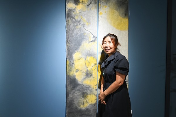 하원미술관에 전시된 김정은 화가의 개성 넘치는 30여 점의 작품이 미술관을 방문한 관람객들과 미술애호가들의 눈길을 끌고 있다. 미술관에 들어서면 넓은 천에 번진 먹물이 그린 절경 속에서 달이 떠오른 작품이 눈에 띈다. 검은 먹으로부터 밝은 빛을 향하여 피어오르듯 그려낸 작품이 인상적이다. 코로나19로 지친 심신을 위로해 주는 것만 같은 형상을 화폭에 옮긴 김정은 화가와 지난 4일 대화를 나눴다.