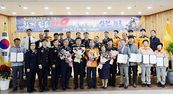 김준성 영광군수가 지난 9일 ‘소방의 날’을 맞이하여 명예소방서장으로 소방차 길 터주기 동승체험을 했다. 이날 행사는 재난현장 등 행정업무에 기여한 소방공무원, 의용소방대원, 민간 유공자 27명에 대해 표창을 수여했다.