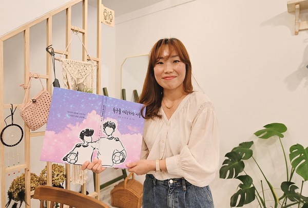“아들들이 축구를 너무 좋아하고 축구선수를 하고 싶다고 하니까 밀어주고 싶은 거예요. 어떻게든 끝까지 꿈을 이룰 수 있게 해주고 싶은 마음을 그림책에 담았어요.”