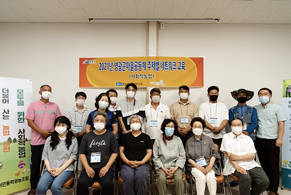 사회적농업은 사실 마을돌봄과 긴밀한 관계가 있다. 사회적농업의 정의는 ‘농업의 다원적 기능에 기반을 두어 다양한 사회적 서비스를 제공하는 것(한국농촌경제연구원)’이다. 사회적농업의 실천유형을 구분하면 일자리를 제공하는 노동통합형, 정신적·신체적 장애가 있는 이에게 농업 치료적 돌봄을 제공하는 돌봄형, 직업훈련으로 농업을 배우는 교육형으로 구분할 수 있다. 영광군 지역에서는 여민동락영농조합법인이 2020년 사회적 농업 활성화 거점농장으로 선정되어 사회적농업 참여농장을 발굴하고 지원하는 역할을 하고 있다. 여민동락사회적농장의 주된 활동은 지역 어르신들에게 농업을 통한 일자리를 제공하고, 학생, 청년, 귀농인에게 농업교육을 제공한다.