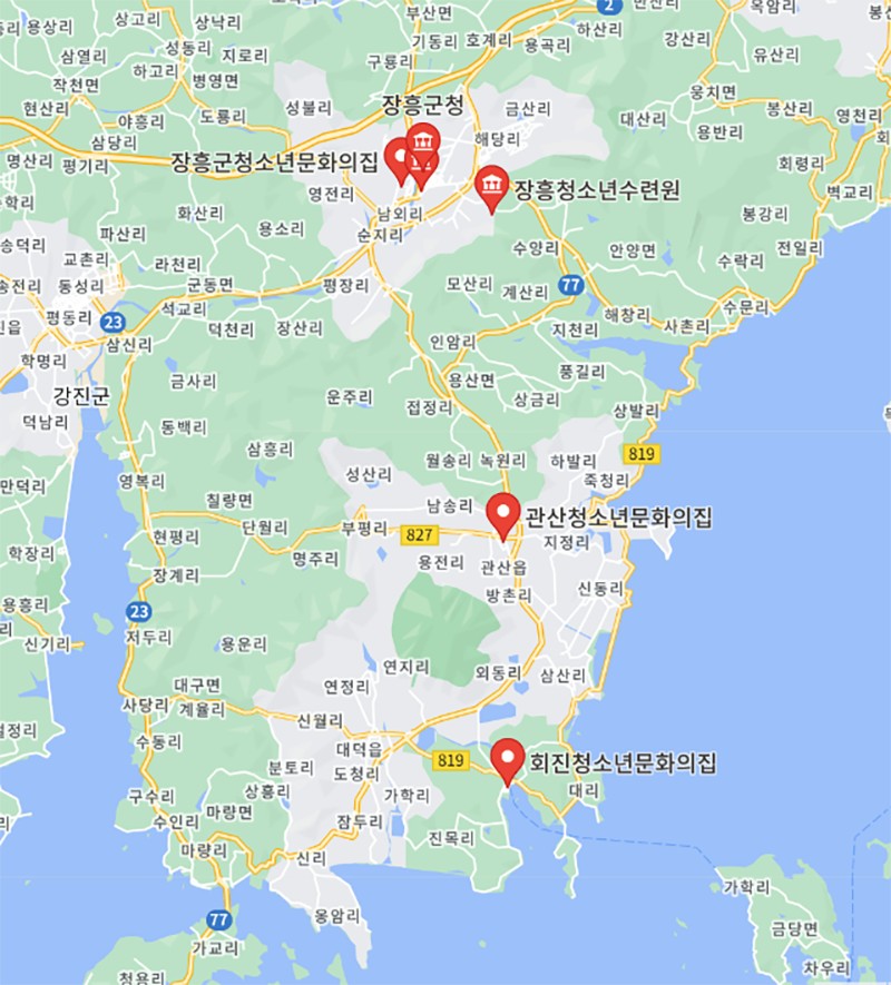 장흥군 청소년 수련관은 장흥읍을 중심으로 하는 청소년 활동허브로서의 역할을 수행한다. 나머지 청소년문화의집은 먼거리에서 청소년 서비스를 이용하기 힘든 원거리 거주 청소년들이 이용할 수 있도록 하고 있어 영광군이 참고할만 하다.