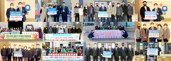 연말연시를 맞아 이웃 돕기 온정이 이어지고 있다. 군은 내년 1월말까지 ‘희망2023나눔캠페인’을 시작했다. 채지영 기자 ygpress@naver.com 다른기사 보기 저작권자 © 영광신문 무단전재 및 재배포 금지 당신만 안 본 뉴스 제5회 영광 디카시 공모전 지상전 ‘光風’으로 나누는 기본소득 ‘국회의장상’ 권혁범 여민동락공동체 대표 영광키즈카페 어디에 어떻게 짓나? 수능시험 무사 종료 학생수 감소 심각 햇빛·바람이 만드는 영광의 미래 ③ 분산에너지특구 기회의 문 열렸다 제5회 영광 디카시 공모전 지상전 댓글삭제 삭제한 댓글은 다시 복구할 수 없습니다. 그래도 삭제하시겠습니까? 비밀번호 닫기 기사 댓글 0 댓글 접기 로그인 후 이용 가능합니다. 댓글 내용입력 비회원 로그인 이름 비밀번호 댓글 내용입력 댓글쓰기 계정을 선택하시면 로그인·계정인증을 통해 댓글을 남기실 수 있습니다. 회원 로그인 비회원 글쓰기 이름 비밀번호 자동등록방지 로그인 옵션 창닫기 주요기사 생사의 기로에... 장세일 군수, 이재명 대통령과 ‘邂逅’ ‘햇빛바람 기본소득’ 한번 더, 전국무대 알렸다 ‘아이디어 돋보인’ 구수‧대신 어촌계 ‘대상’ 마을 빈공간 활용 태양광 ‘발전수익’ 고리 2호기 수명연장 승인에 ‘촉각’