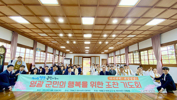 원불교 대각개교절을 맞아 영광교구와 영산성지공동체 주관으로 영산성지 대각전에서 지난 20일 오전 7시 조찬기도회를 열었다. 이날 기도회에는 영광교구 김선명 교구장과 영산사무소 김경일 소장, 영산선학대학교 백인혁 총장, 국제마음훈련원 이경열 원장, 김정운 교의회의장, 광주원음방송 김원명 본부장 등이 참석했다. 또한, 지역 정치권에서는 이개호 국회의원, 강종만 군수, 강필구 의장과 도·군의원을 비롯해 기관·단체장 등이 참석한 가운데 조찬기도회를 가졌다. 박원중 사무국장의 사회로 진행된 이날 기도회는 위대한 영광 행복한 군민이라는 슬로건으로 교구장의 환영사, 이개호 의원, 강종만 군수, 강필구 의장 인사말, 김경일 영산사무소장의 설법, 김정운 교의회의장의 덕담이 이어졌다.