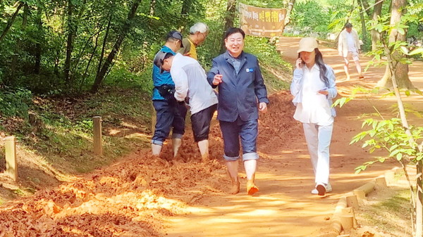 최주봉과 함께 떠나는 ‘테마기행 길’ 작가에게 강종만 군수가 물무산행복숲 황톳길을 소개 중이다. 영광신문 press@ygnews.co.kr 다른기사 보기 저작권자 © 영광신문 무단전재 및 재배포 금지 당신만 안 본 뉴스 제5회 영광 디카시 공모전 지상전 ‘光風’으로 나누는 기본소득 ‘국회의장상’ 권혁범 여민동락공동체 대표 영광키즈카페 어디에 어떻게 짓나? 수능시험 무사 종료 학생수 감소 심각 햇빛·바람이 만드는 영광의 미래 ③ 분산에너지특구 기회의 문 열렸다 제5회 영광 디카시 공모전 지상전 댓글삭제 삭제한 댓글은 다시 복구할 수 없습니다. 그래도 삭제하시겠습니까? 비밀번호 닫기 기사 댓글 0 댓글 접기 로그인 후 이용 가능합니다. 댓글 내용입력 비회원 로그인 이름 비밀번호 댓글 내용입력 댓글쓰기 계정을 선택하시면 로그인·계정인증을 통해 댓글을 남기실 수 있습니다. 회원 로그인 비회원 글쓰기 이름 비밀번호 자동등록방지 로그인 옵션 창닫기 주요기사 생사의 기로에... 장세일 군수, 이재명 대통령과 ‘邂逅’ ‘햇빛바람 기본소득’ 한번 더, 전국무대 알렸다 ‘아이디어 돋보인’ 구수‧대신 어촌계 ‘대상’ 마을 빈공간 활용 태양광 ‘발전수익’ 고리 2호기 수명연장 승인에 ‘촉각’