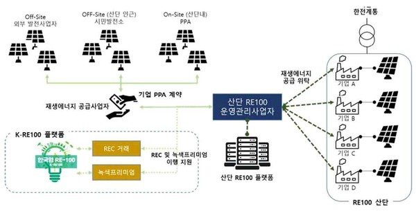 #RE100 산업단지 신규 조성= RE100 이라는 ‘재생에너지 전기 100%’의 약자와 산업단지의 합성어로 산업단지 내에서 사용하는 전력을 모두 재생에너지인 태양광, 풍력 등의 친환경 에너지로 사용하는 산업단지를 신규 조성하는 것을 뜻한다.