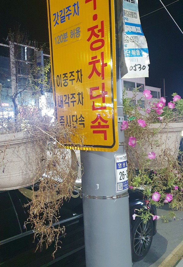 ‘계절과일’이라는 말은 옛말이 된 지 오래됐다. 하물며 꽃도 봄·여름·가을·겨울을 가리지 않고 피어나기도 한다. 22일 살얼음이 잡히고 땅이 얼기 시작한다는 스무 번째 ‘소설’ 절기가 지났다. 그런데 여름꽃 장미가 겨울 장미로 변신을 시도하며 영광읍 생활체육 공원 일대에 피었다. 영광읍 주요 시내 주요 도로 가로등에 화분이 달려있다. 시내 화분 속의 나팔꽃은 자동차 매연 때문인지 겨울 장미처럼 생명력이 강하지 못하는 것 같다. 화분속의 나팔꽃 넝쿨이 화분 밖으로 나오는가 하면 시들어 말라 죽었다. 절기상 가로등 화분의 자태는 지금의 계절과는 어울리지 않는 것 같다.