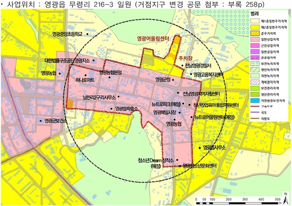센터는 상위거점 생활중심지인 영광읍의 서비스 시설 강화와 교육 건강복지 공간 조성으로 필요생활서비스 제공, 성산근린공원 인근 주민들의 주차난과 교통 혼잡을 해소할 목적이다.
