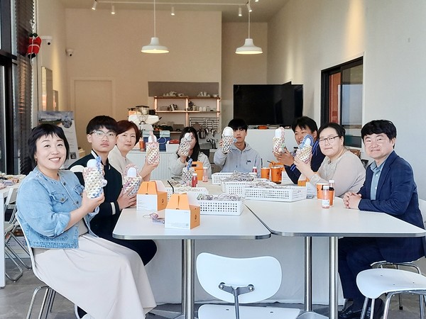 안터공방은 전라남도영광교육지원청의 의뢰를 받아 학교 선생님과 학생들을 대상으로 못난이 농산물로 만든 안타민 딸기주스 시음과 새활용 양말목 공예 보틀 백 만들기 체험(with 어반멜로우)을 진행했다.