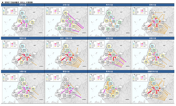 특히, 보육·교육·복지·문화·체육 등 12개 분야 시설을 지역 내에서 이용하는지 아니면 외부에 의존하는 지 내·외부 이용률을 분석한 대부분이 영광읍이나 타지역에 의존하는 비율이 높거나 심각했다.