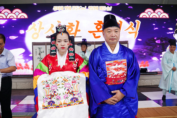 신부의 족두리와 상사화의 화려한 자태가 잘 어울린다는 찬사를 받았던 이 행사는 잊혀져 가는 우리의 아름다운 전통문화를 소개하고 더불어 결혼식을 올리지 못하고 사는 가정에 혼례식을 통해 부부로써의 자긍심을 높여주고자 영광향교에서 매년 상사화축제에 맞춰 벌이는 행사로 올해는 영광읍에 사는 다문화가정 성모씨 부부가 주인공이 됐다.