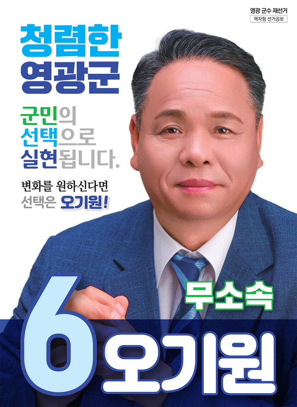16년만에 영광군수 재선거가 치러진다. 이번 재선거는 4명의 후보가 출마한 가운데 오늘(11일)부터 12일까지 사전투표가 진행된다. 본 투표는 오는 16일 열린다. 영광신문은 후보자 4명의 신상을 공개한다. <편집자 주>