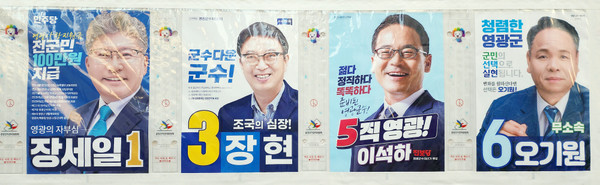 오는 10월16일 영광군수 재선거, 선택의 시간이 왔다. 영광군청 외벽에 부착된 선거벽보. 채종진 기자 admin@ygnews.co.kr 다른기사 보기 저작권자 © 영광신문 무단전재 및 재배포 금지 당신만 안 본 뉴스 제5회 영광 디카시 공모전 지상전 ‘光風’으로 나누는 기본소득 ‘국회의장상’ 권혁범 여민동락공동체 대표 영광키즈카페 어디에 어떻게 짓나? 수능시험 무사 종료 학생수 감소 심각 햇빛·바람이 만드는 영광의 미래 ③ 분산에너지특구 기회의 문 열렸다 제5회 영광 디카시 공모전 지상전 댓글삭제 삭제한 댓글은 다시 복구할 수 없습니다. 그래도 삭제하시겠습니까? 비밀번호 닫기 기사 댓글 0 댓글 접기 로그인 후 이용 가능합니다. 댓글 내용입력 비회원 로그인 이름 비밀번호 댓글 내용입력 댓글쓰기 계정을 선택하시면 로그인·계정인증을 통해 댓글을 남기실 수 있습니다. 회원 로그인 비회원 글쓰기 이름 비밀번호 자동등록방지 로그인 옵션 창닫기 주요기사 생사의 기로에... 장세일 군수, 이재명 대통령과 ‘邂逅’ ‘햇빛바람 기본소득’ 한번 더, 전국무대 알렸다 ‘아이디어 돋보인’ 구수‧대신 어촌계 ‘대상’ 마을 빈공간 활용 태양광 ‘발전수익’ 고리 2호기 수명연장 승인에 ‘촉각’