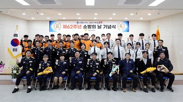 영광소방서(서장 박의승)는 지난 8일 본서 대회의실에서 제62주년 소방의 날 기념식을 열어 소방행정 발전에 이바지한 유공자를 격려하고, 소방공무원으로서 자긍심을 고취하는 시간을 가졌다.