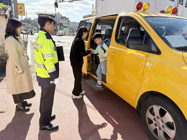 이날 단속은 학원 어린이 통학차량에 대한 안전성을 강화하고 어린이 승하차 과정에서 발생할 수 있는 사고를 예방하기 위해 진행됐으며, 영광경찰서 교통관리계 경찰관 2명과 교육지원청 직원 2명이 읍내 초등학교 앞에서 하굣길 학생들을 태우러 오는 학원 통학차량을 대상으로 보호자 동승 여부를 확인하는 한편, 탑승한 어린이가 좌석 안전띠를 매도록 안전지도를 하고 있는지 여부 등 도로교통법에서 규정한 의무사항을 이행하고 있는지를 확인했다.