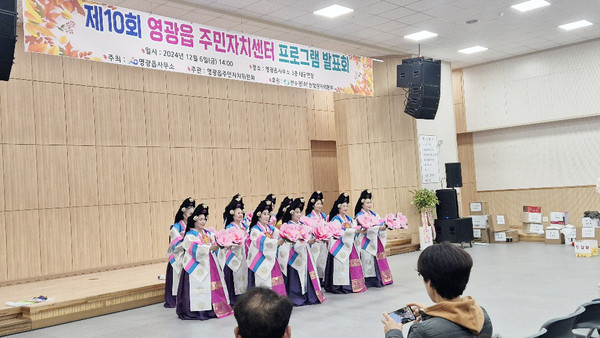 이번 발표회는 영광읍 주민자치위원회가 주관하고 수강생들이 지난 1년 동안 갈고닦은 실력을 발휘할 기회를 제공해, 회원들 간 화합의 장을 마련하고자 매년 개최하는 행사로 영광읍 기관·사회 단체장과 관계자, 수강생 등 300여 명 이 참석한 가운데 성황을 이루었다.
