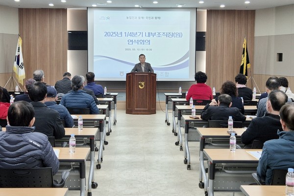 이날 회의에는 김남철 조합장 후보 시절 공약한 공약 이행률에 대한 평가 및 24년 조합원에대한 실익지원 현황과 25년 실익지원 계획에 대하여 설명하고 1/4분기 각종 당면업무를 전달하는 시간을 가졌으며 회의 말미에는 농협사업에 대한 조합원들의 인식 설문조사를 통해 의견을 청취하는 시간을 가졌다.