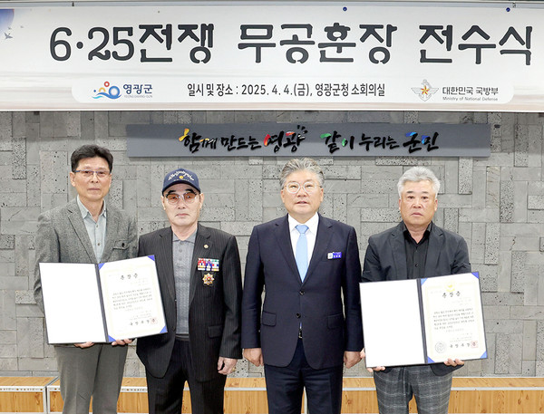 영광군은 지난 4일, 영광군청 2층 소회의실에서 6.25 참전용사 故박기현 하사와 故한환수 상병의 유가족에게 화랑무공훈장을 전수했다.