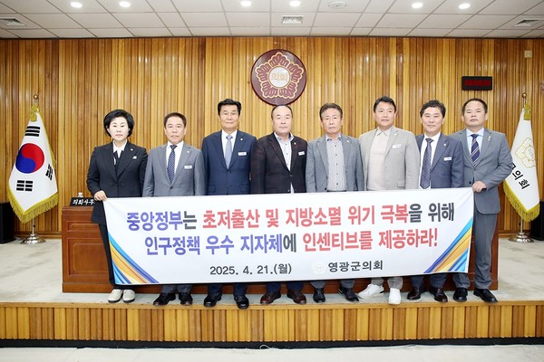 영광군의회(의장 김강헌)는 지난 21일 열린 제287회 임시회 제2차 본회의에서 인구정책 선도와 우수 지자체에 대한 정부 차원의 실질적 인센티브 제공을 촉구하는 건의안을 채택했다.