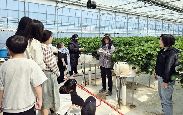 군서면에 위치한 1,278㎡ 규모의 스마트 온실에서 딸기를 키우는 영광군 청년창업농 경영실습 임대농장 1호 청년 농부 ‘키작은농부 김인겸’과, 안터상회에서 요리교실을 운영하는 ‘까르멜로 김효민’이 손을 맞잡았다.