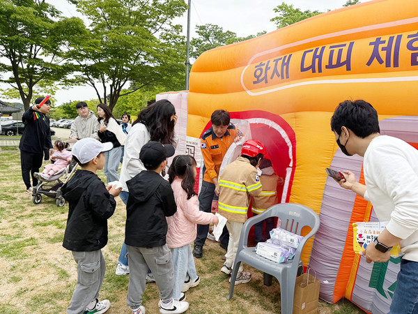 특히 에어바운스 활용 화재대피 체험은 실제 화재 상황을 가상으로 재현해 아이들이 몸으로 대피 요령을 익히는 활동으로 참여자들의 관심을 끌었다.