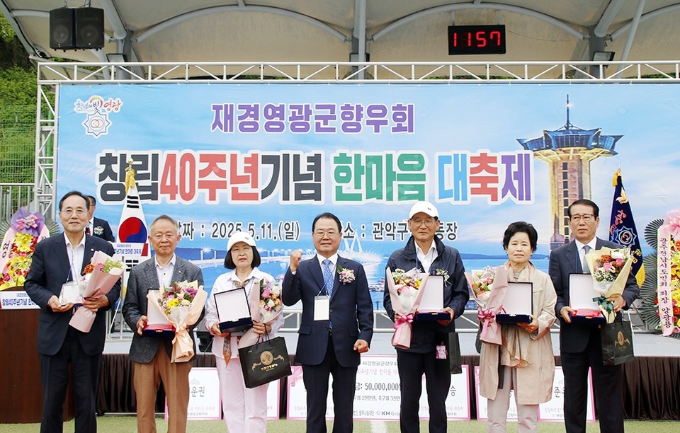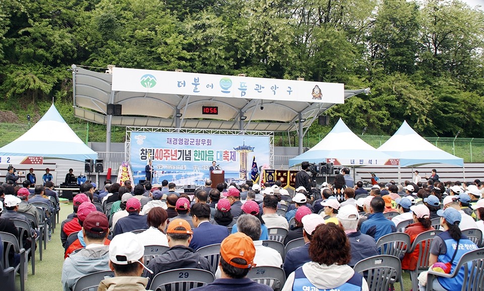 재경영광군향우회(회장 박춘구)가 창립 40주년을 맞아 지난 5월11일, 서울 관악구민운동장에서 ‘고향사랑 향우사랑 자랑스러운 영광 향우회’를 슬로건으로 ‘한마음 대축제’를 성대하게 개최했다. 이날 행사에는 수도권에 거주하는 향우회원 1,500여 명이 모여 고향의 정을 나누고, 화합과 감동의 뜻깊은 시간을 가졌다.